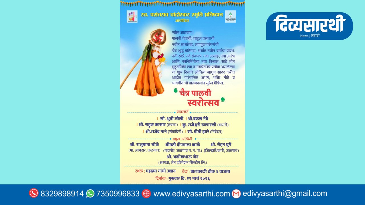 जळगाव : चैत्र शुद्ध प्रतिपदा अर्थात गुढीपाडवा हा साडेतीन शुभ मुहूर्तांपैकी एक मानला जाणारा अत्यंत मंगल दिवस असून याच दिवशी नव्या मराठी वर्षाची सुरुवात होते. या मंगल दिनाचे स्वागत करण्यासाठी स्व. वसंतराव चांदोरकर स्मृती प्रतिष्ठानच्या वतीने प्रात:कालीन सुगम संगीताच्या मैफिलींचा ‘चैत्र पालवी स्वरोत्सव’ आयोजित करण्यात आला आहे.