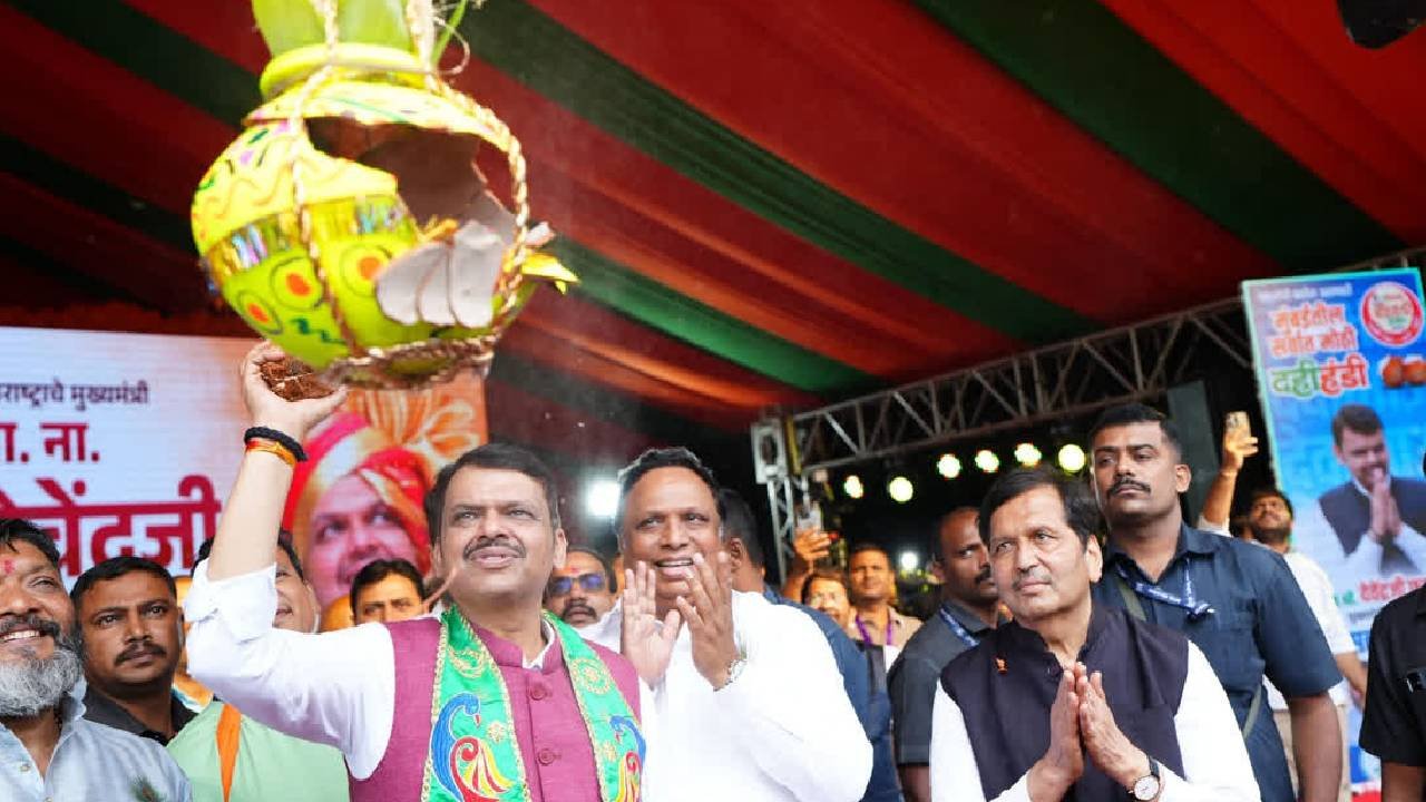 मुंबई : दहीहंडी उत्सव यंदा राजकीय रंगाने अधिकच गडद झाला आहे. सत्तेच्या हंडीसाठी नेत्यांची धडपड आणि कार्यकर्त्यांची लगबग, यामुळं मुंबई महापालिका निवडणुकीच्या पार्श्वभूमीवर उत्सवाचं स्वरूप अधिकच स्पर्धात्मक झालं आहे. पावसाच्या सरींसोबतच राजकीय टोलेबाजी व आरोप-प्रत्यारोपांच्या फैरी झडताना दिसत आहेत. अशा वातावरणात मुख्यमंत्री देवेंद्र फडणवीस यांनी “मुंबई महापालिकेत परिवर्तन अटळ असून, आम्ही विकासाची हंडी लावणार आहोत,” असा विश्वास व्यक्त करत कार्यकर्त्यांमध्ये नवचैतन्य निर्माण केलं.