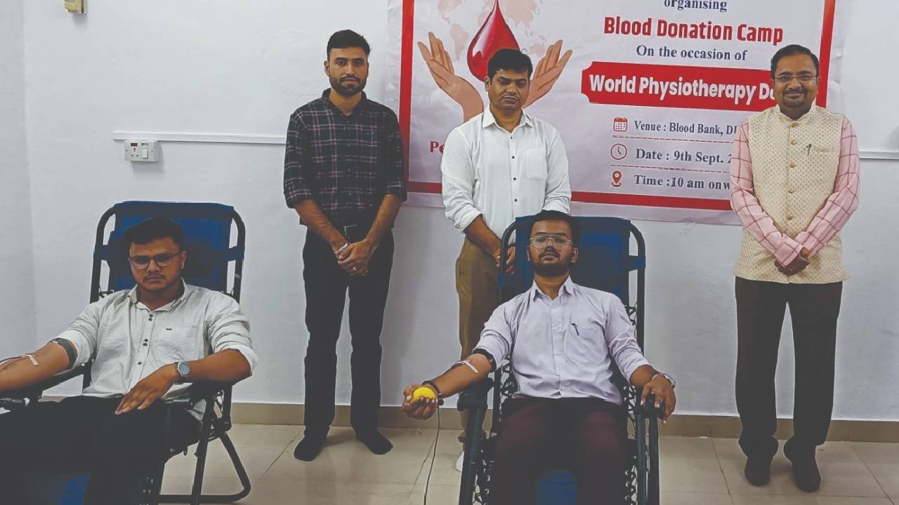 जळगाव : जागतिक फिजिओथेरपी दिन सप्ताह २०२५ च्या उत्सवाचा एक भाग म्हणून रक्तदान शिबिर डॉ. उल्हास पाटील वैद्यकीय महाविद्यालय व रुग्णालय रक्तपेढीमध्ये आयोजित करण्यात आले. या शिबिराचे उद्घाटन दीप प्रज्वलन करून डीन डॉ. प्रशांत सोलंके, प्राचार्य डॉ. जयवंत नागुलकर व डॉ. रिया अग्रवाल यांच्या हस्ते करण्यात आले. हे शिबिर यशस्वीरित्या डॉ. अनुराग मेहता आणि डॉ. वैष्णवी चौधरी यांच्या संयोजनाखाली आयोजित करण्यात आले. विद्यार्थ्यांनी आणि कर्मचारीवर्गाने उत्साहाने सहभाग घेतला. एकूण ५० विद्यार्थ्यांनी रक्तदान केले व शिबिर अत्यंत यशस्वी झाले.